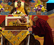 Meanwhile, Khenchen Thrangu Rinpoche made tenshug, long life offerings to His Holiness.
